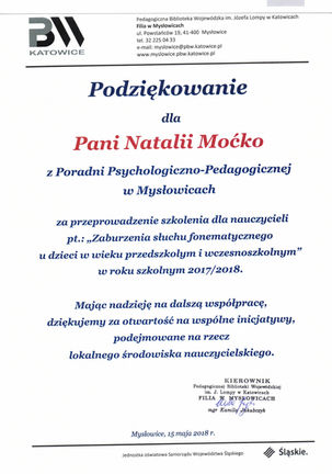 w Poradni Psychologiczno-Pedagogicznej w Mysłowicach, ul. Wielka Skotnica 84a.